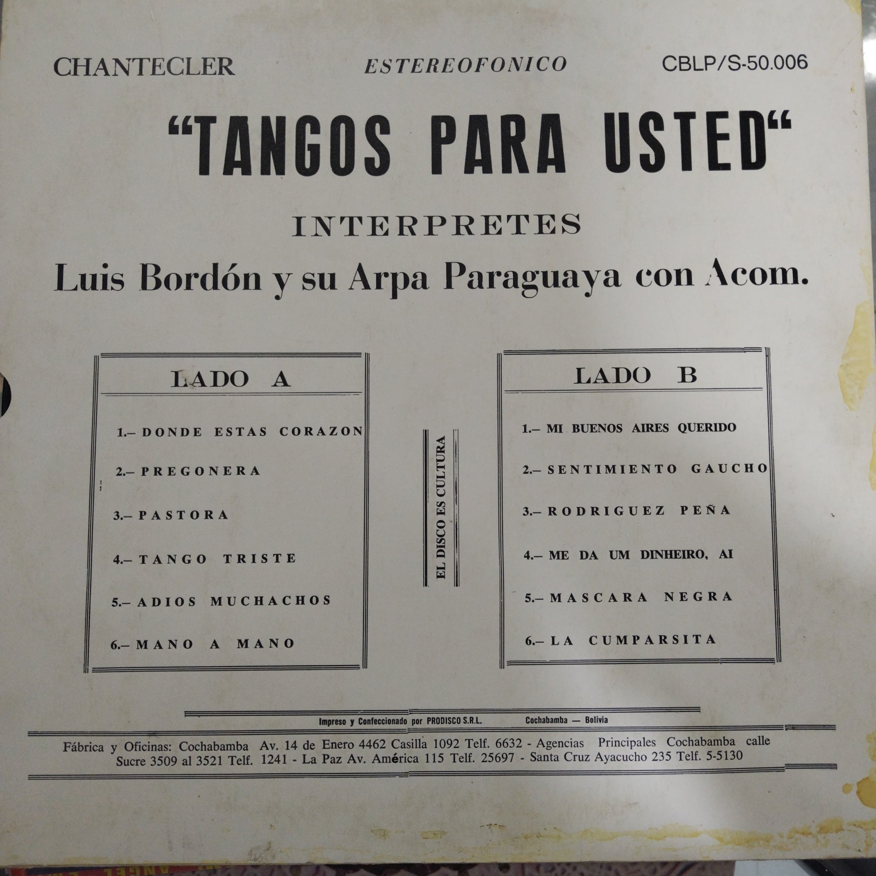 Luis Bordón. Tangos Para Voce